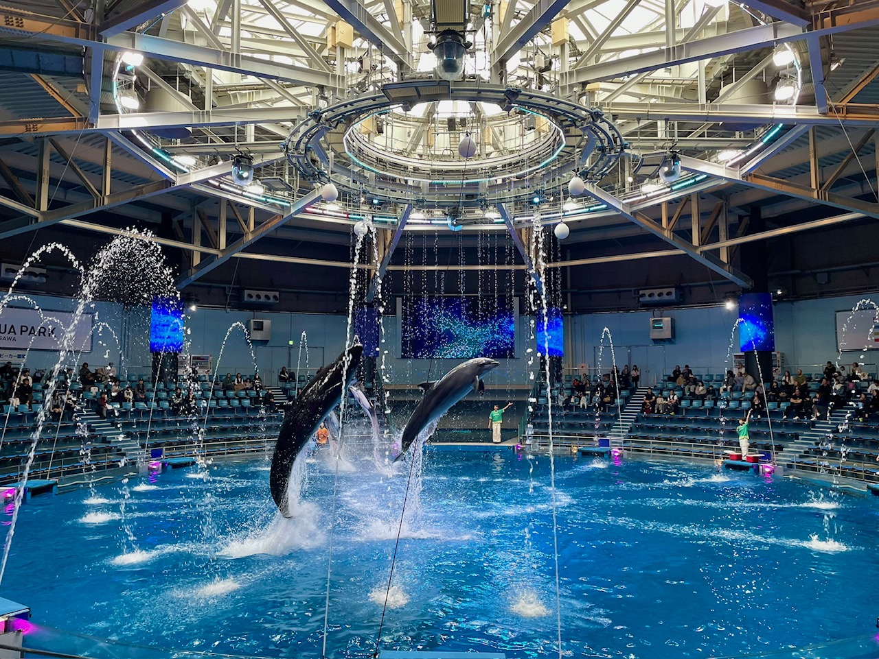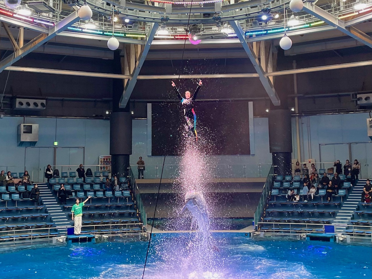 楽しみにしていたイルカショーでは、迫力あるジャンプに
