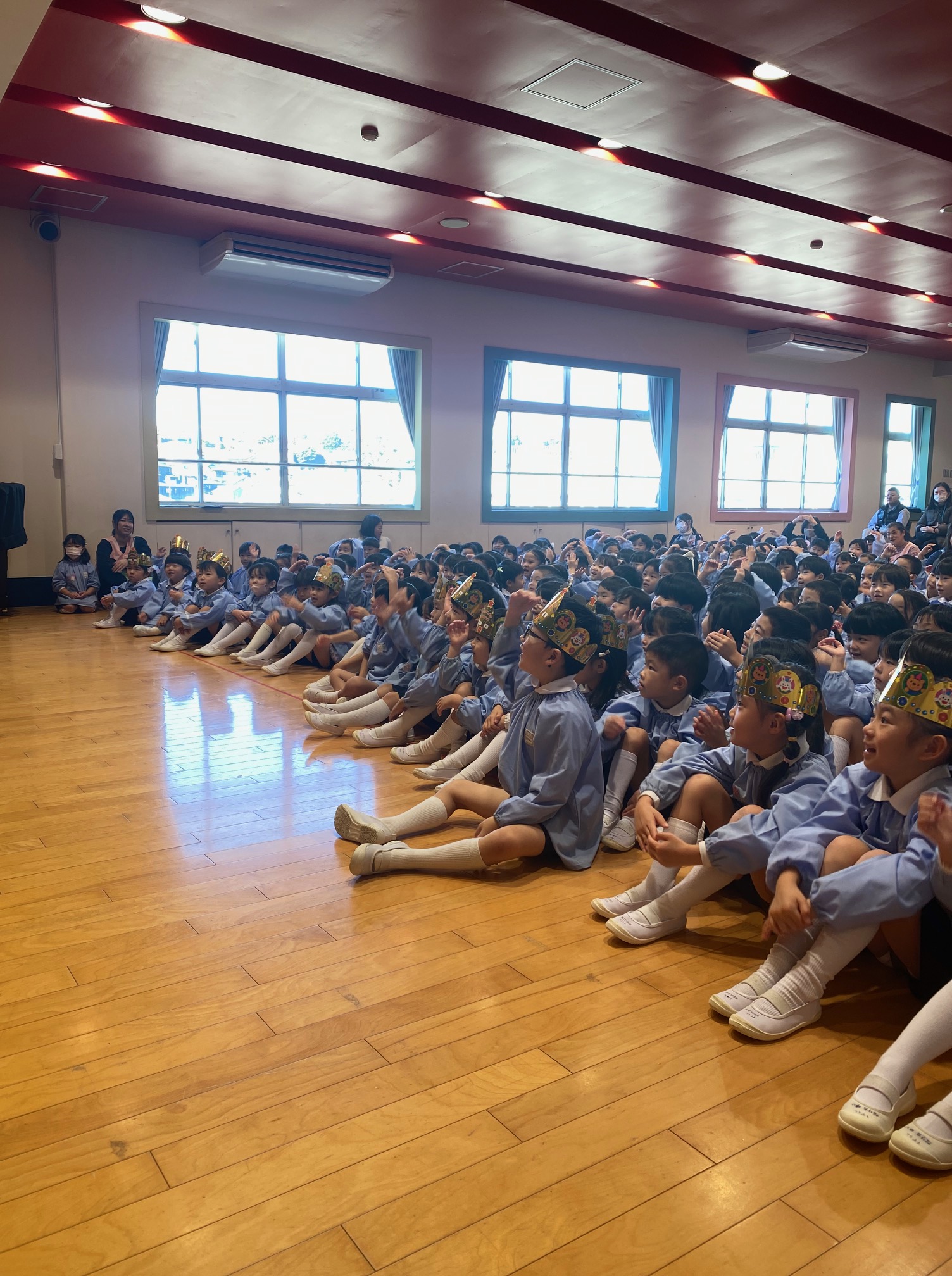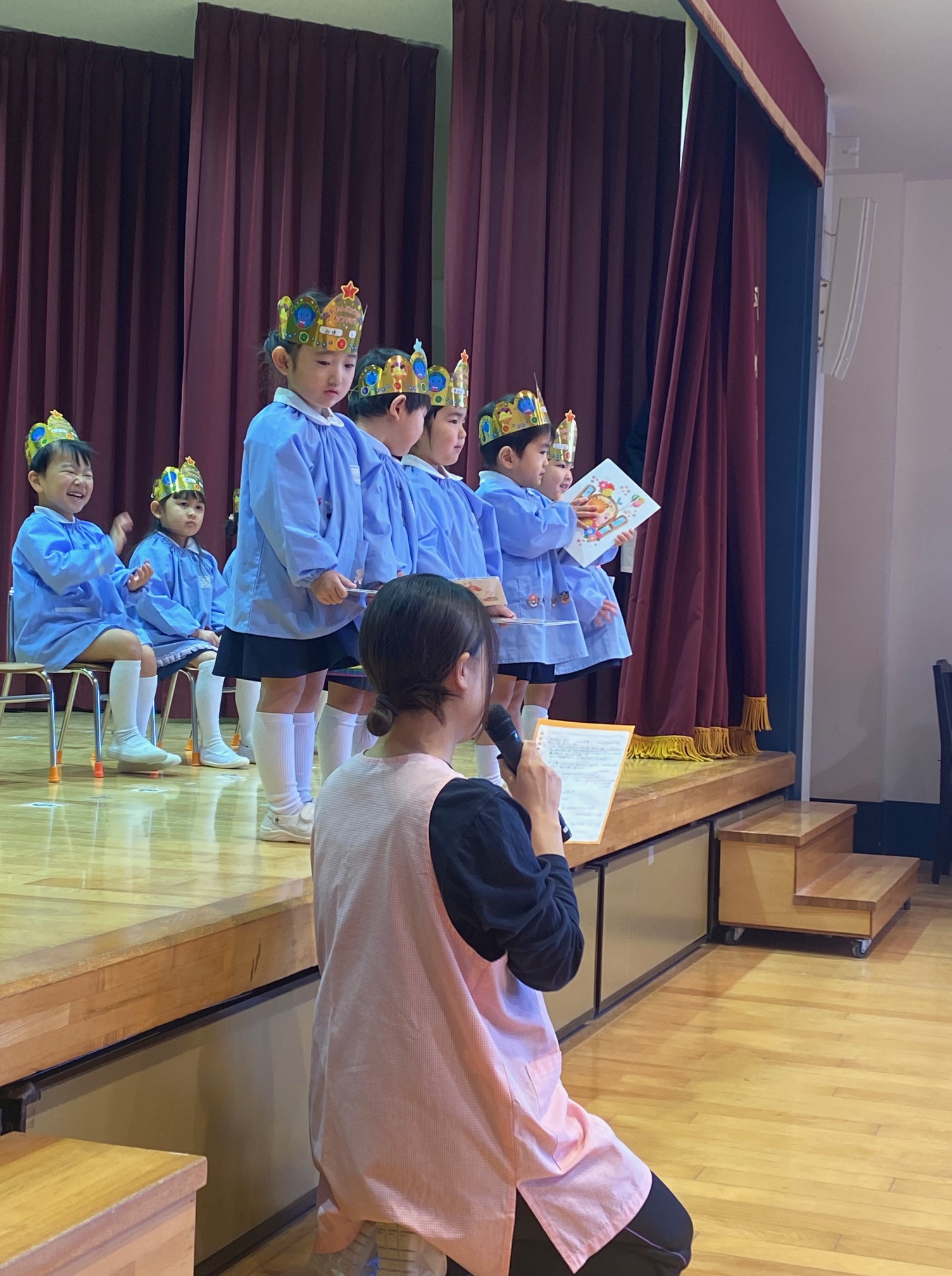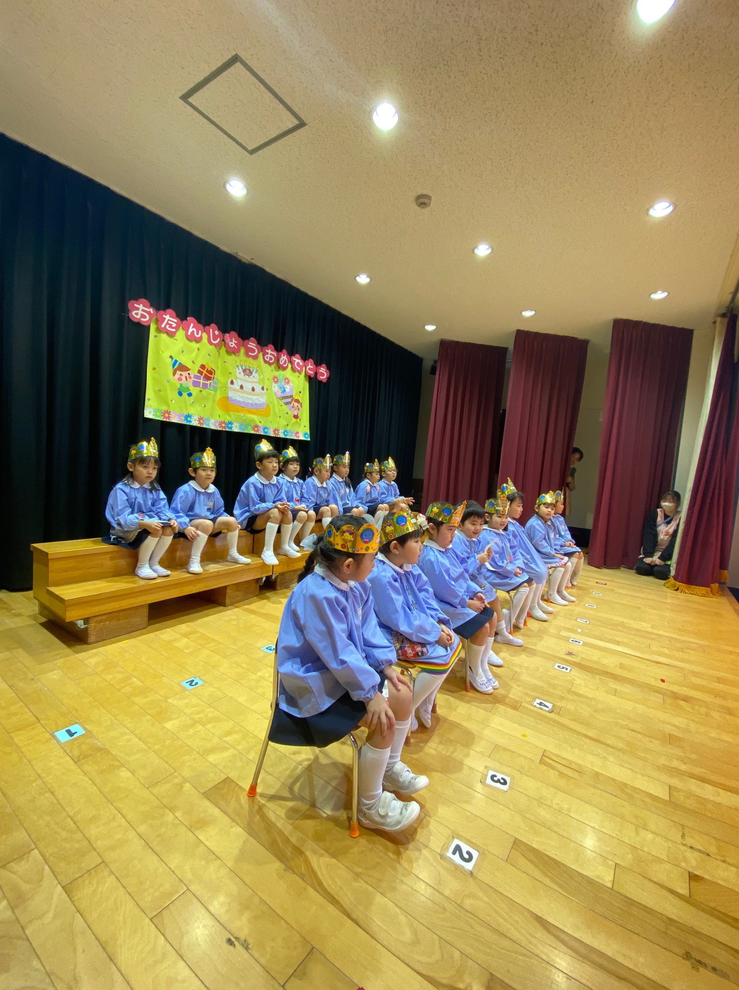 舞台にあがってのインタビューはちょっとドキドキしたけれどみんな上手に出来ました!また言葉や歌のプレゼントなどみんなでお友達をお祝いすることが出来ました。