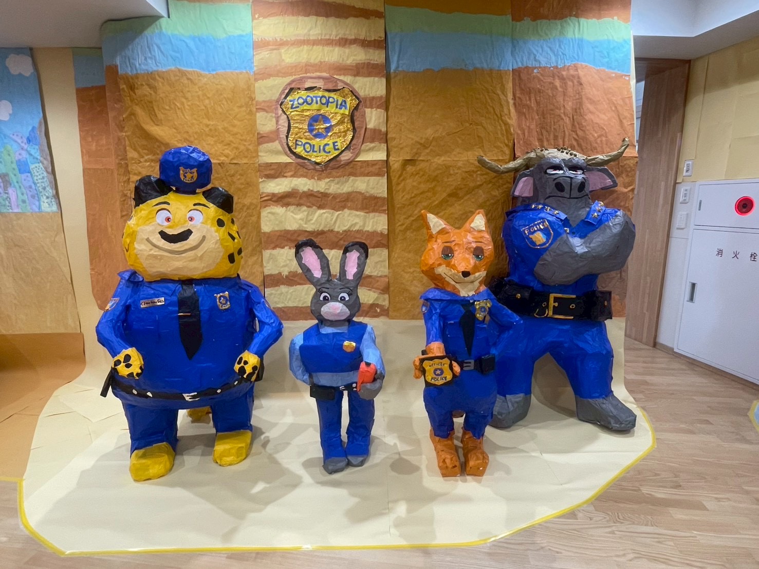 そして年長組は学年全員で「ズートピア」の共同製作を作りました。