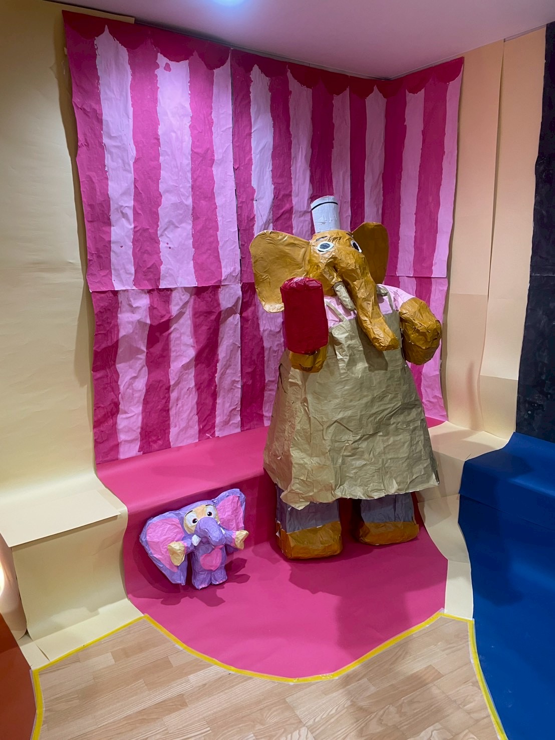 ぞう組・年少組・年中組・年長組それぞれの年齢に合わせて、さまざまな素材や道具に触れながら、子どもたちが自分なりにのびのびと表現した作品を、保護者の皆さまにご覧いただきました。