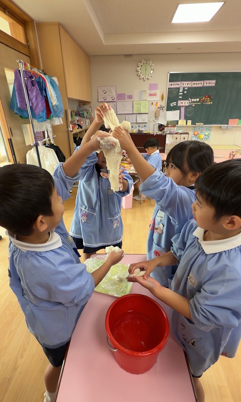 つくたびにお餅がびよーんと伸びて、「すごーい!」と大盛り上がりでした!!