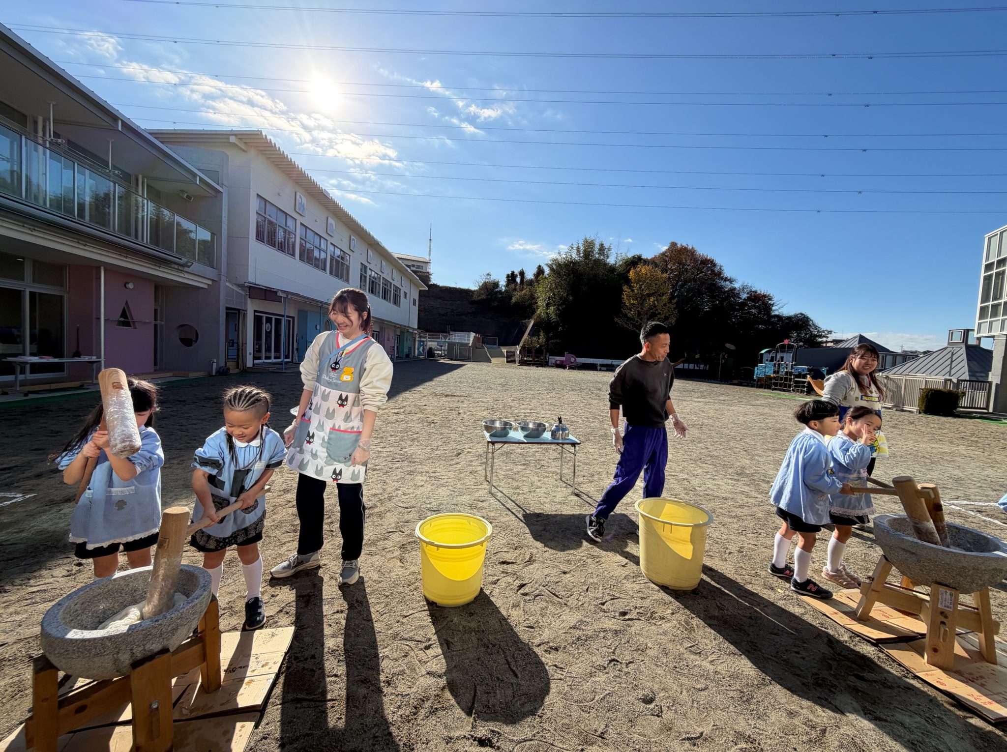 園中が笑顔いっぱいの楽しいお餅つきになりました!!