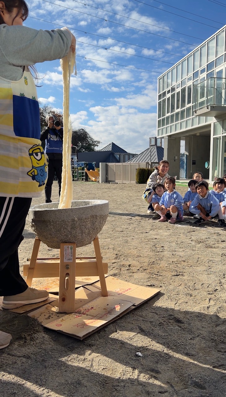 つくたびにお餅がびよーんと伸びて、「すごーい!」と大盛り上がりでした!!